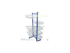 This floor display features double-sided powder coated steel wire basket rack. This effective floor stand is equipped with metal wire shelving for different products and the layers are adjustable as per the customers' demand. Different logo can be silk screened on the header, shelves and bottom for the valued brand. The display doesn’t breaks down for efficient shipping.